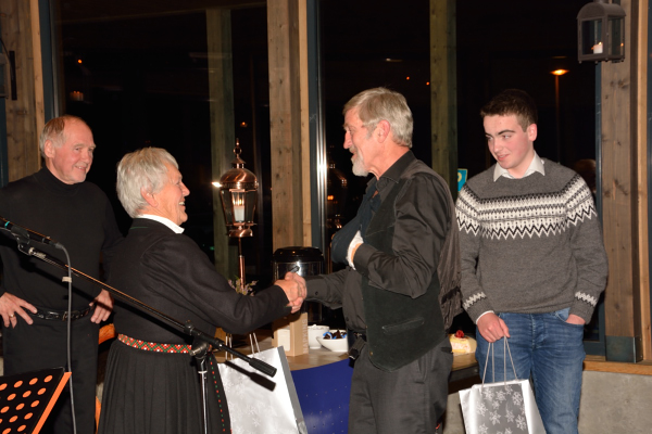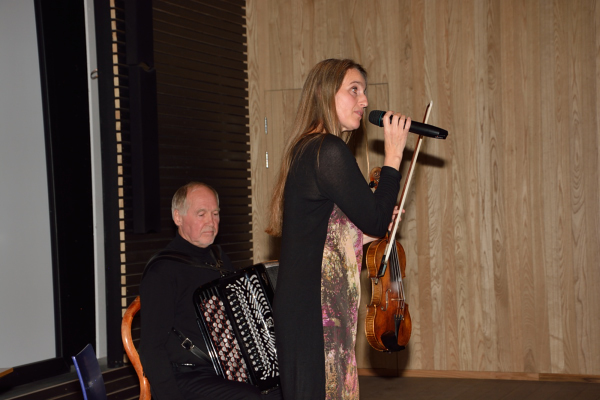 Ser jeg dermed at det kan bli vanskeligere tider for lokalhistorisk arbeid i framtiden? Både ja og nei. Vi har heldigvis enda noen som fortsatt tar et løft for denne gode sak, styremedlemmene og andre tillitsvalgte, som skal ha en stor takk. Så må det igjen rettes en stor takk til de som fra starten så viktigheten av arbeidet for vår lokalhistorie, og selvsagt en takk til dere som er her i kveld og gjør markeringen så fin. Først en eventyrlig forestilling av Susanne Lundeng om tradisjonsmusikk i Vestvågøy/ Lofoten. Så Lofotbesøket av «Petter Dass» framført av Oddvar Kleppa.