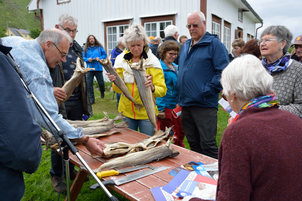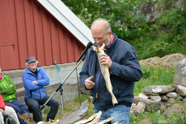 Dagens tema er tørrfiskvraking. Rolf Jentoft forklarer og demonstrerer.