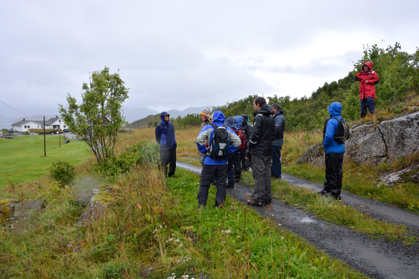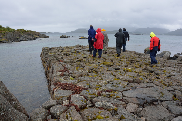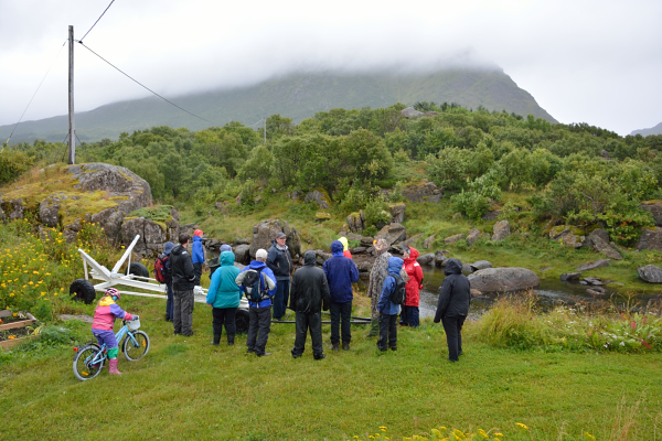 For å få den nødvendige vassføringen, var det laget en solid steindemning i vassdraget fra Ramsvikvannet. Dette fikk deltakerne innsikt i gjennom ledsager Johan Sirnes og gårdseier Jørgen Solbakk. Vi ble vennlig møtt av familien oppe ved Ramsvikveien, som tok oss med helt ned til gårdstunet og fjorden. Her var det gjort i stand til kaffeselskap i naustet, der praten gikk muntert. Vi fikk også besøk av Svein Kongsjord, som i 2012-utgaven av LOFOTR skriver om registrerte vassdrevne kverner/møller i Vestvågøy. 107 i tallet spredt omkring på øya. Der kan en finne interessant stoff.