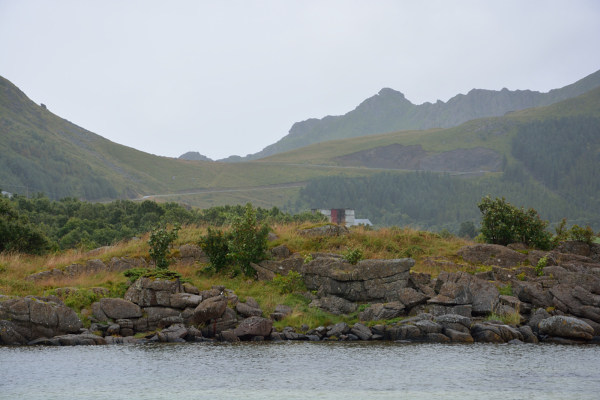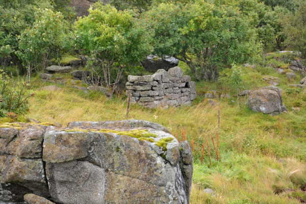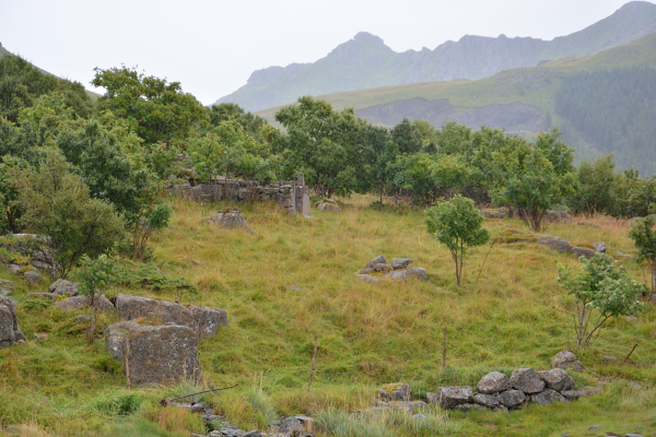 Rester etter gamle hus på den andre sida av elva.