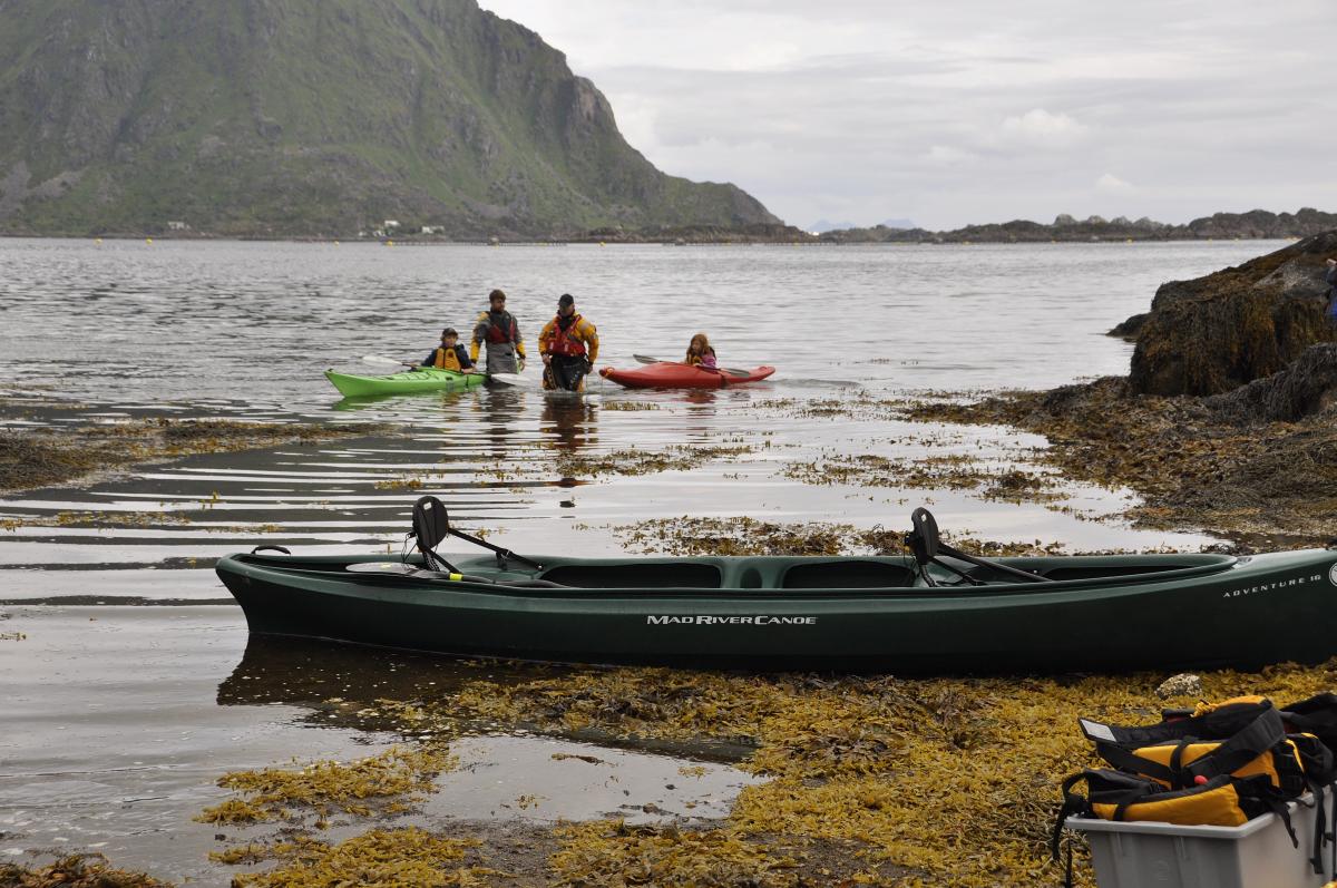 Ungene fikk prøve å padle i kajakk.                                                        Ernst banket tørrfisk.
