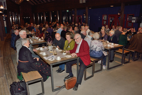 Ser jeg dermed at det kan bli vanskeligere tider for lokalhistorisk arbeid i framtiden? Både ja og nei. Vi har heldigvis enda noen som fortsatt tar et løft for denne gode sak, styremedlemmene og andre tillitsvalgte, som skal ha en stor takk. Så må det igjen rettes en stor takk til de som fra starten så viktigheten av arbeidet for vår lokalhistorie, og selvsagt en takk til dere som er her i kveld og gjør markeringen så fin. Først en eventyrlig forestilling av Susanne Lundeng om tradisjonsmusikk i Vestvågøy/ Lofoten. Så Lofotbesøket av «Petter Dass» framført av Oddvar Kleppa.