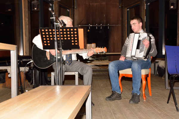 Historielagets yngste medlem, Sander Krogh, spiller også trekkspill.