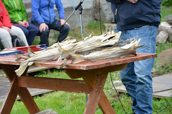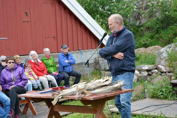 Dagens tema er tørrfiskvraking. Rolf Jentoft forklarer og demonstrerer.